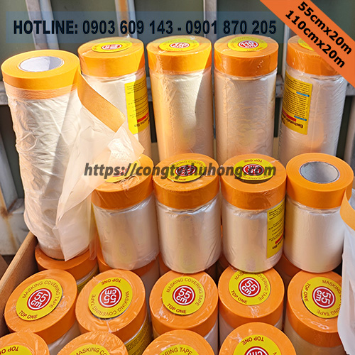 Màng bọc che bụi hay bạn có thể tìm với cái tên khác là màng nilon che sơn, che các vết bẩn. Sản phẩm được cấu tạo với băng dính 1 mặt và phần còn lại là nilon để dùng che các bề mặt cần che vết bẩn.