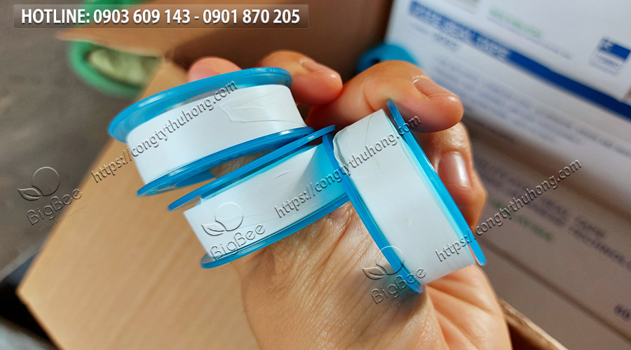Màu sắc: Ruột băng keo non màu trắng sữa, lõi và vòng vỏ nhựa màu xanh dương trong