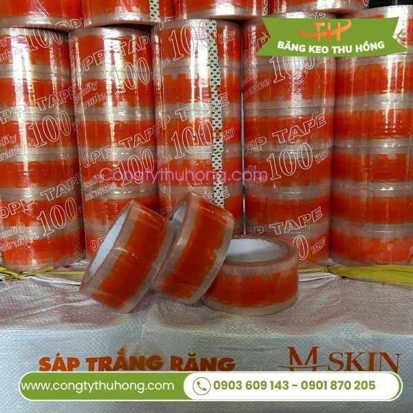 Được sản xuất từ màng nhựa PVC và BOPP, băng keo này không chỉ đảm bảo độ bền chắc mà còn mang lại khả năng kết dính tốt nhờ lớp keo acrylic. Quá trình sản xuất bắt đầu bằng việc phủ màu nền lên băng keo, sau đó sử dụng trục đồng để in logo và các thông tin khác theo thiết kế đã được khách hàng phê duyệt.